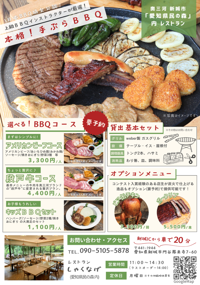 | 定休日 | 不定休 | 電話番号 | 090-5105-5878(代表:藤田) ※BBQは完全予約制、ご予約ください |