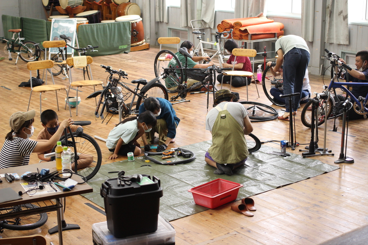 今回の初級編は、東栄町内には自転車屋さんがないため、気軽に自転車の相談できる場がないこともあり、日常点検やパンク修理などの講習と実践の場となりました。