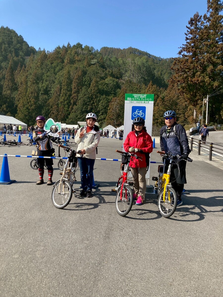 国道151号を東栄駅の方に向けて走りました。一番気をつけたのは、新本郷トンネルを走るときです。トンネルの中は慎重に走り、会場に着きました。着いて驚いたことは、広い駐輪場が作ってあったことでした。うれしかった!その駐輪場の前で写真撮影しました。