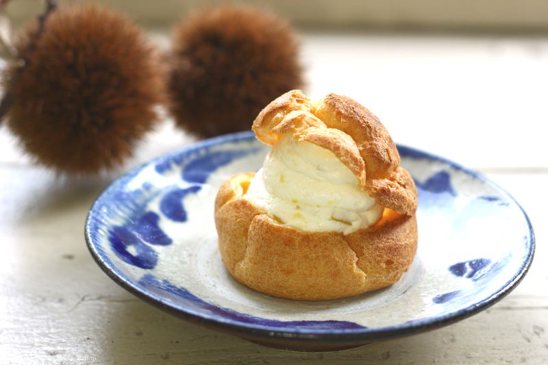 東栄町の伝統的なお祭りである「花祭り」をイメージして作られたお菓子で、中にクリームチーズが入った洋風の和菓子となっています。
